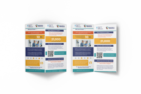 A collection of print and video content related to radon awareness and health services, including testing guidelines and informative content.